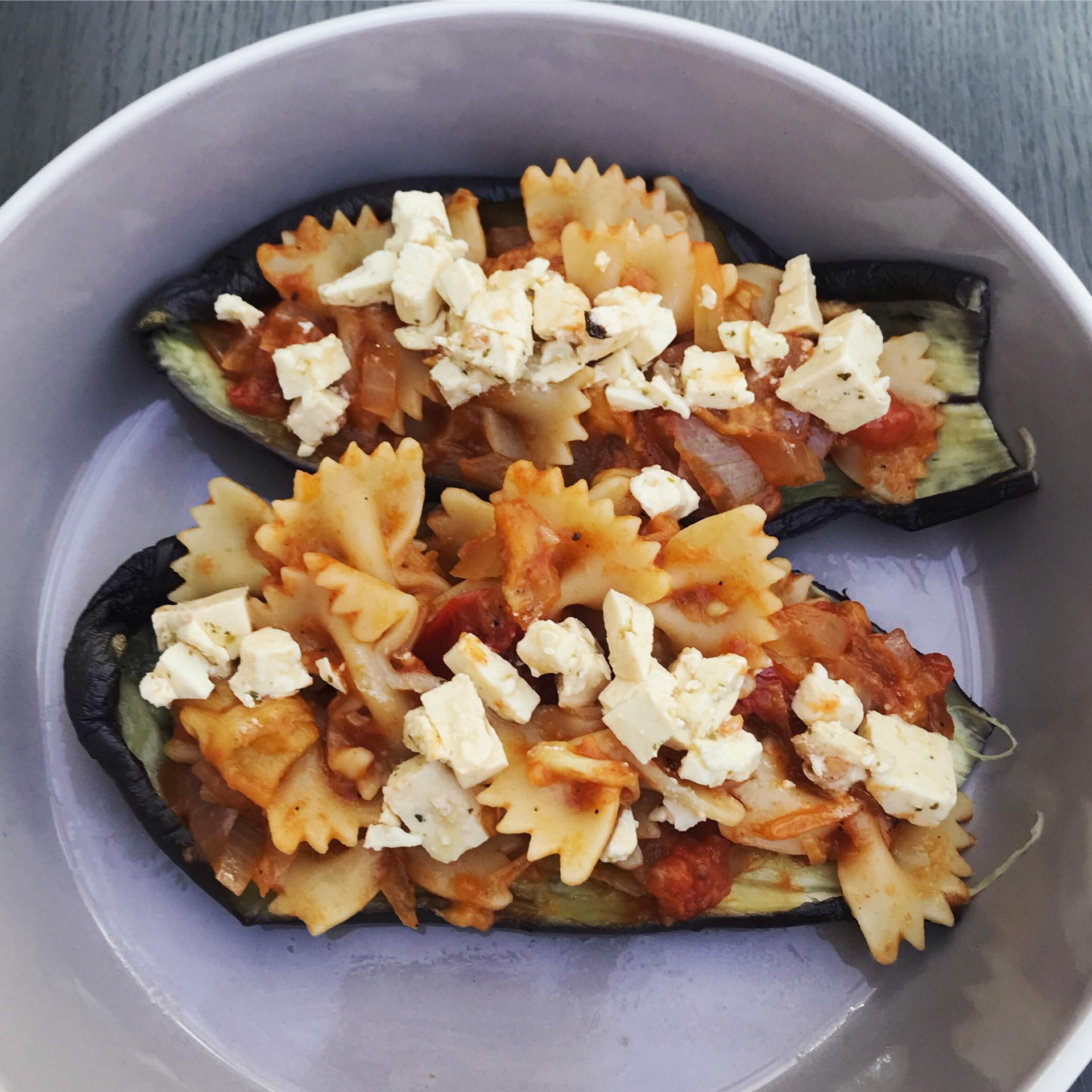 - Vul de aubergine en werk af met peterselie en verkruimelde feta.