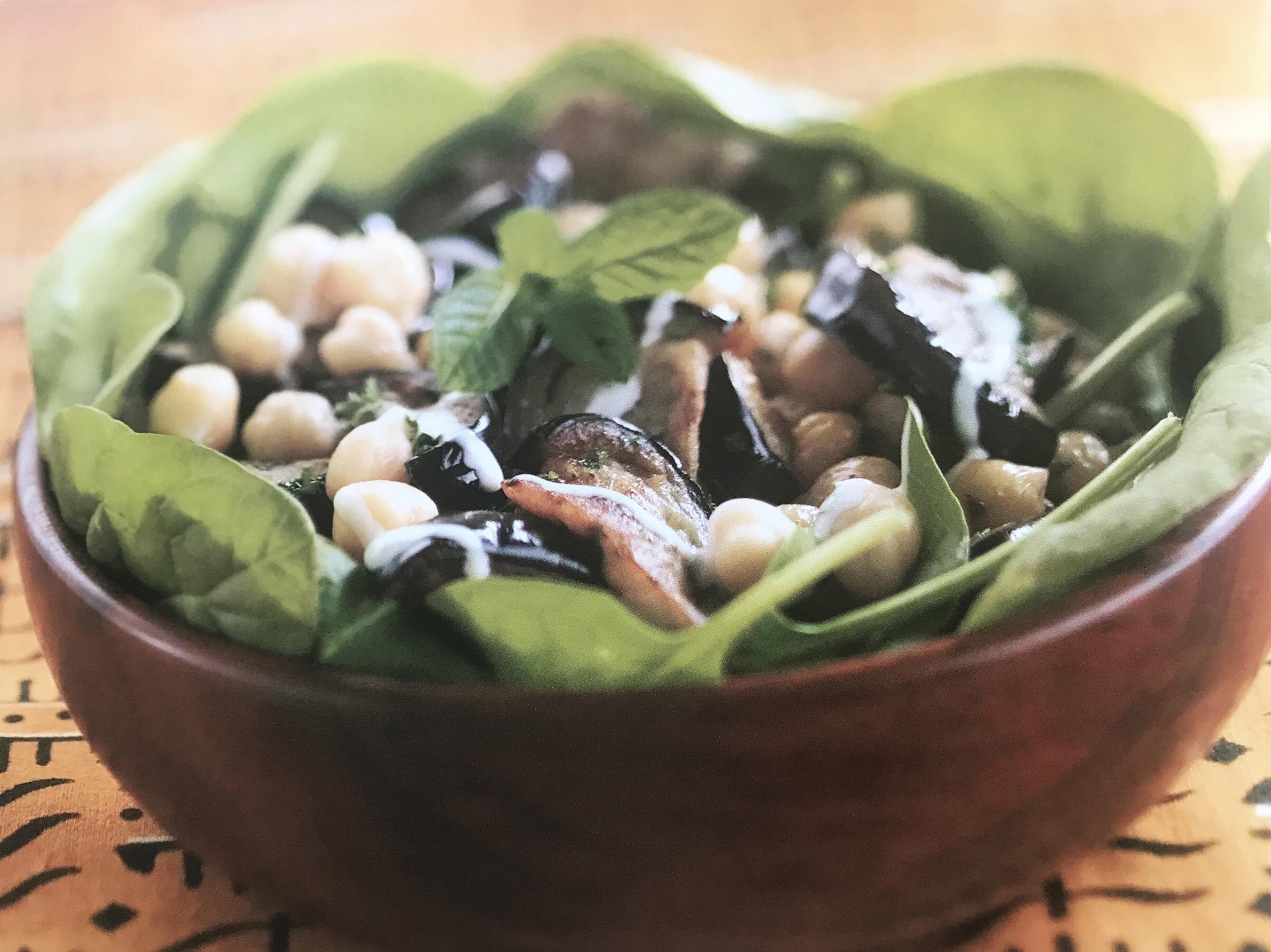 Salade van aubergine en kikkererwten